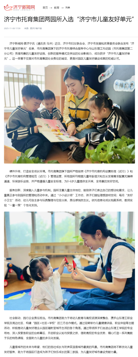 原鏈接:濟寧市托育集團兩園所入選“濟寧市兒童友好單元”